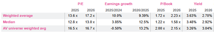 A good starting point is that for now the rise is a case of multiple expansion, as 2026 PEs have nearly doubled (see chart below) to 17x.