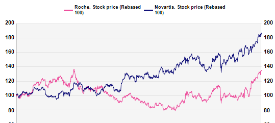 The 2026 guidance is quite unexciting. Novartis still trades at a nice premium to Roche (PE26 at 20.4x vs 16.7x) with less EPS growth (2.6% before revision, vs 11.3%). Our expert expects Roche to catch up vs Novartis (see below 5 y relative graph).