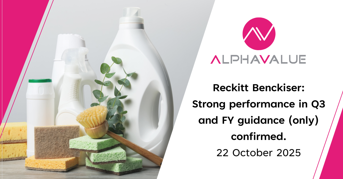 Q3 2025 sales of £3.61bn were up by 7% on a cc basis (vs consensus slightly below 6%), with core Reckitt (+6.7%) and Mead Johnson Nutrition (+22%) outperforming expectations and offsetting the weak showing in Essential home (-4.9%).