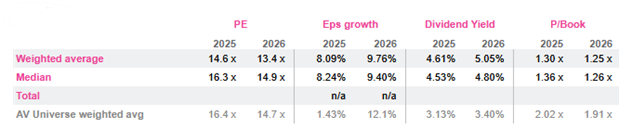 No, as per the following valuation table excluding DT. The very decent yield matches the low PEs, but the surprise is earnings growth over 2025 and 2026. Trumpian uncertainty has been beneficial.