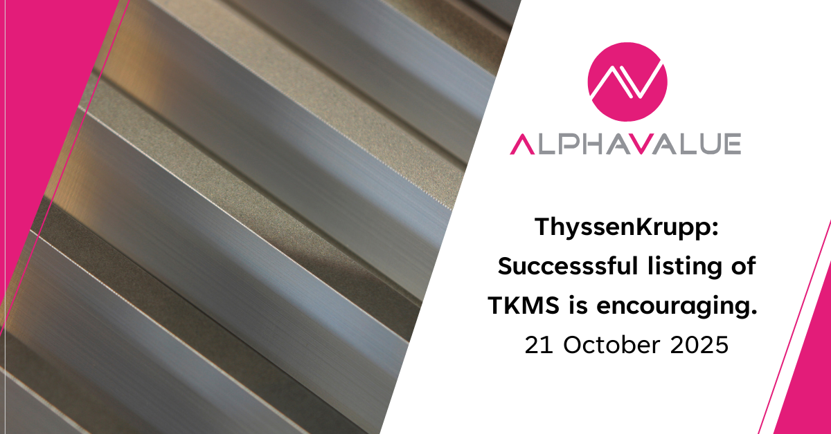 We still see substantial upside on ThyssenKrupp on the back of its fundamental value. The next key trigger will be the evolution of Steel Europe. The deal with Jundal group in India would further improve sentiment on the name. According to press rumors, the material services division could also be IPOed soon, further transforming TK into a holding company. Now we know that holdings tend to have a subsequent discount to NAV but our SOTP stands at €15.3 per share ie offering 63% upside currently. Even with a significant discount to NAV, our expert still sees some upside on the name with expected good momentum on steel and materials.